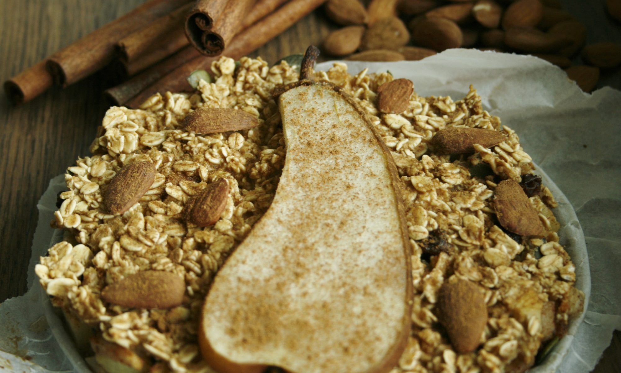 Dit heerlijk warme ontbijt heeft een lekker krokant korstje en zacht fruit. Een goed begin van een winterse dag.