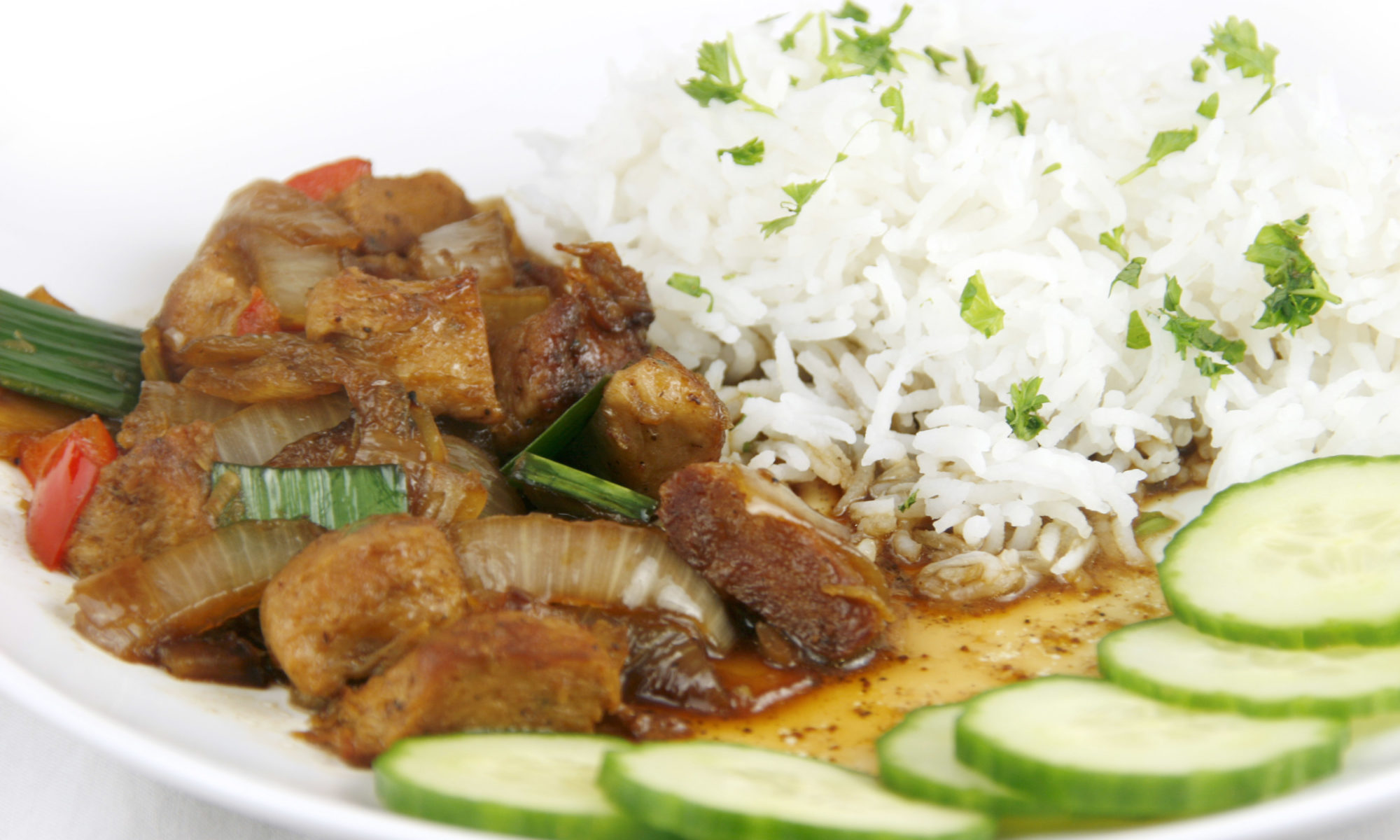 Smoor Ajam (gesmoorde kip) is een traditioneel Indonesisch gerecht. Plantaardige kipfilet is hiervoor uitermate geschikt. Serveer het met rijst, komkommer en taugé!